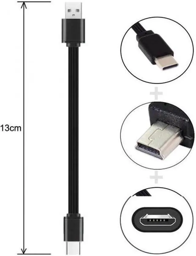 1. 3pcs/lot 13cm USB 2.0 Type-A to Mini Micro USB Type-C Male Data Flat Slim FPC Cable for FPV Disk Phone