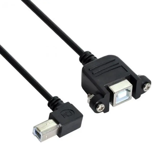 1. 90 Degree Left Angled USB B Type Male to Female extension cable with screws for Panel Mount 50cm