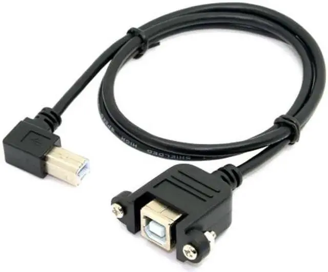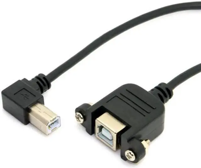 JAENFONG Right angled USB B Male to Female extension cable with screws for Panel Mount 1m