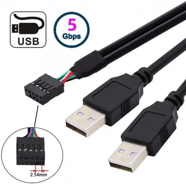 • Motherboard 9Pin 10Pin Female Housing to Dual USB 2.0 Male Type-A Cable 50cm
