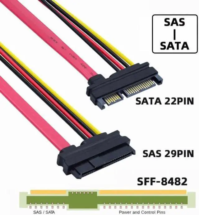 7 Pin SATA Connector to 15 Pin Male Power Connector and 29 Pin SAS Connector.