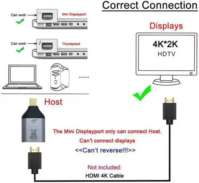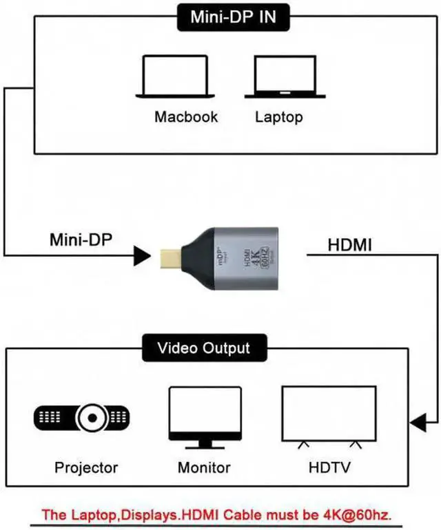 • Mini DisplayPort DP Source to HDMI Sink Displays 4K@60hz Ultra HD Converter Adapter for Laptop Mac