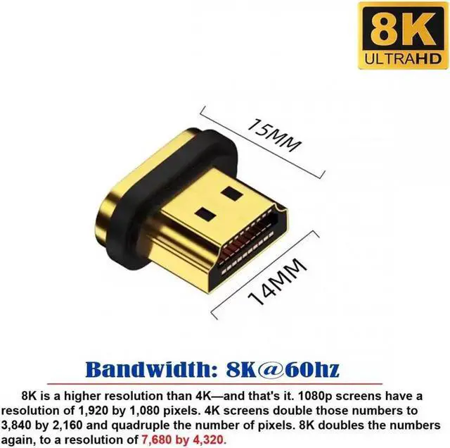 Magnetic Separate Connector 8K Type-A HDMI 2.1 Male Straight 19Pin Contacts Video Adapter for Laptop HDTV