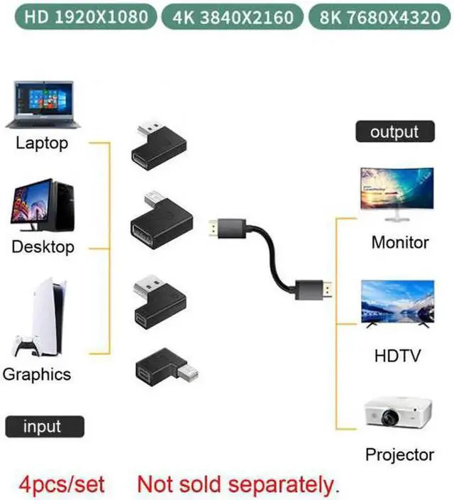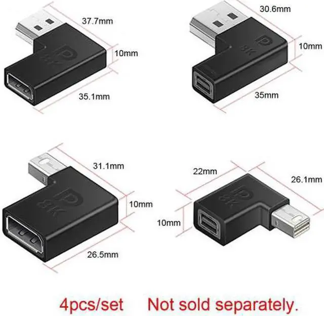 • 4pcs/set 90 degree Left Angled Mini DisplayPort 1.4 8K 60hz to DP Adapter Male Female Ultra-HD UHD for Video PC Laptop TV