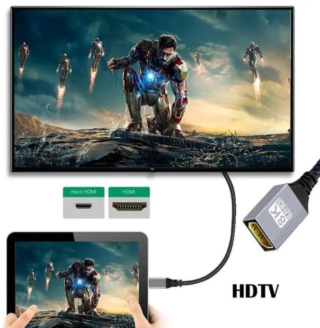 8K Type-D Micro HDMI 2.1 Male Left Angled 90 Degree to HDMI Female Extension HDTV Cable for DV Camera Laptop Portable Monitor