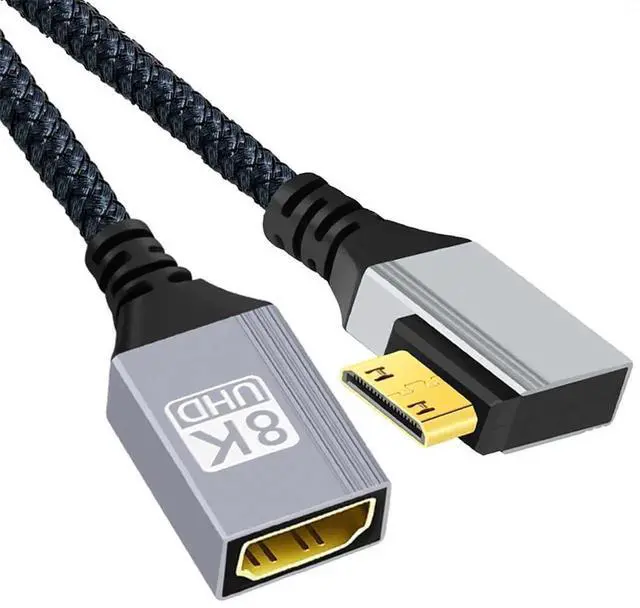 8K Type-C Mini HDMI 2.1 Male 90 Degree Left Angled to HDMI Female Extension HDTV Cable for DV Camera Laptop Portable Monitor
