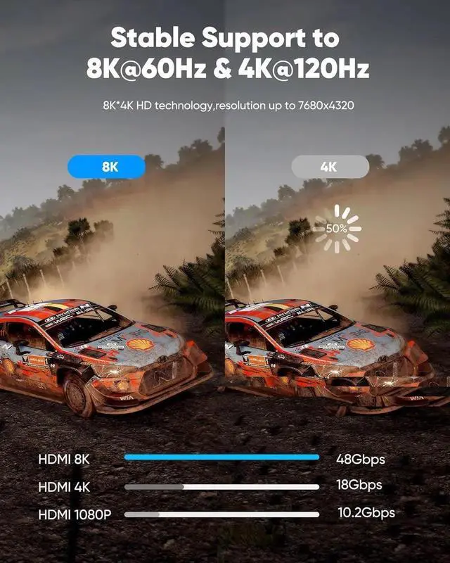 Top Technology----8K@60HZ: This 8K Ultra High Speed HDMI Cable uses the most cutting-edge technology, is compatible with 8K@60HZ and 4K@120HZ, clearly displays every particle, and accurately processes every signal source.