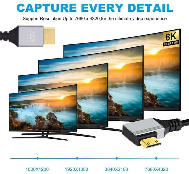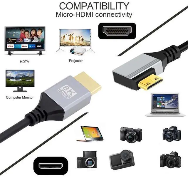 UNIVERSAL COMPATIBILITY: Backwards compatibility with all HDMI versions including HDMI 1.3 / 1.4 / 2.0 / 2.0a / 2.0b / 2.1. Perfect for all Mini HDMI enabled devices such as TV's, Monitors, Computers, Camera.