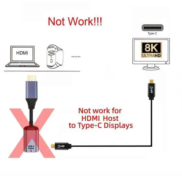 USB-C Type C Female Source to HDMI Sink HDTV cable 8K@60hz 4K@120hz for Tablet Phone Laptop