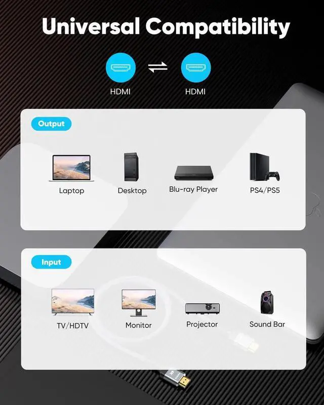 Newest Technology: HDMI 2.0 Cable meets the latest standard HDMI 2.0 Version,which has been tested and certified,Designed perfectly for all devices with HDMI 2.0 standard as well as being backwards compatible with previous HDMI 1.4 , 1.3 & 1.2.