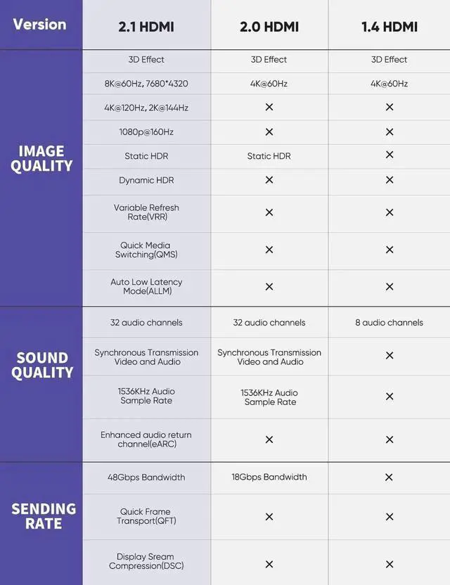 • UHD 8K HDMI Cable 2.1 : 8K Ultra High Speed HDMI 2.1 Cable uses the most cutting-edge technology, is compatible with 8K@60HZ and 4K@120HZ, clearly displays every paricle, and accurately processes every signal source