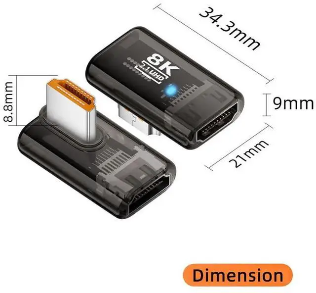 Angled 90 Degree HDMI Male to HDMI 2.1 Female UHD Extension Adapter Extender Transparent with Smart LED 8K 60hz HDTV