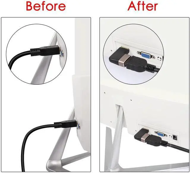 90 Degree HDMI Male to Female Right Angle Adapter,Ideal for tight spaces or hard-to-reach ports on monitors, it's the best choice for connecting a TV stick/set-top box to your TV. Can be used with any monitor, TV, projector, PC, laptop with HDMI port.