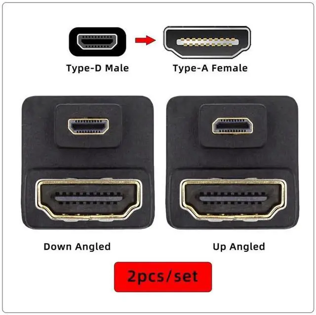 2pcs/lot Micro HDMI 1.4 Male Type-D to HDMI Female Up & Down Port Saver 360 Degree Opposite U Shape Back Angled Extension Adapter Coupler Connector