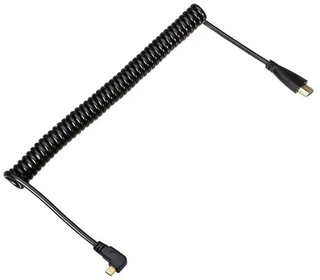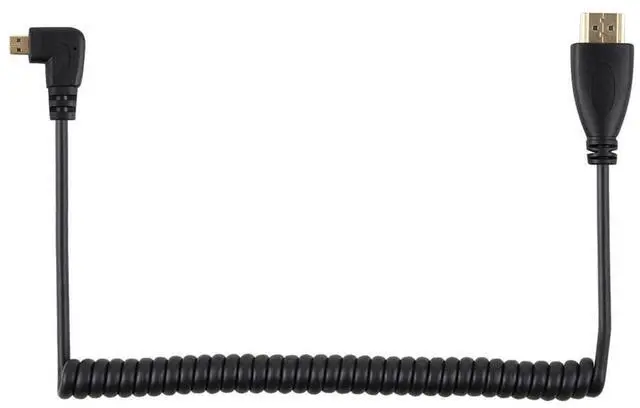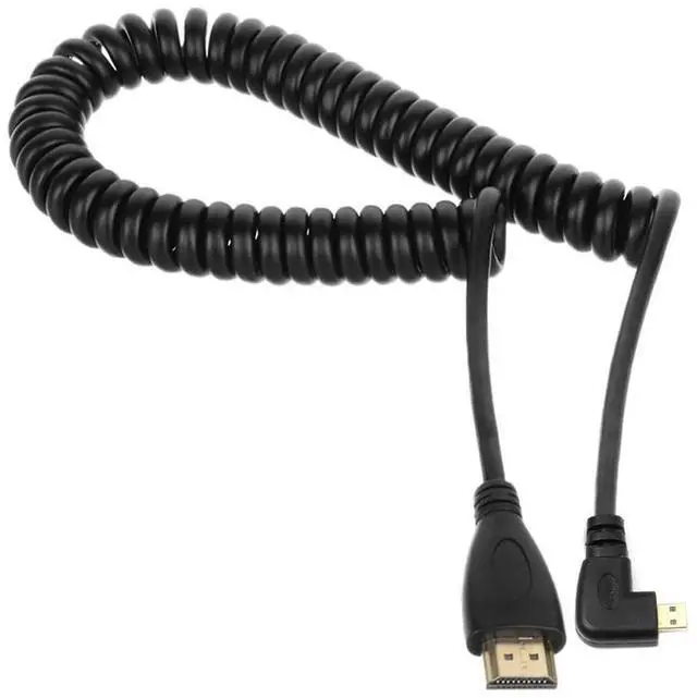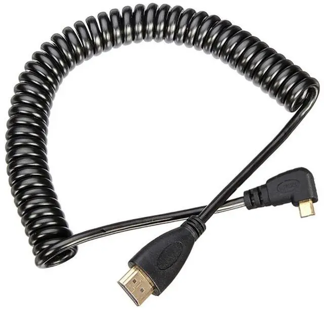 Stretch Coiled Left Angled 90 Degree Micro HDMI to HDMI Male HDTV 4K Cable for Cell Phone & Tablet & Camera (Left Angled)