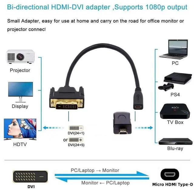 Micro HDMI to DVI Cable Micro HDMI 1.4 Female to DVI 24+1 Male Adapter Cable for Computer HDTV Graphics Card UHD.