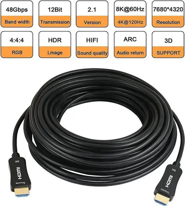 The 8K fiber optic HDMI cable support long distance at 8K@60Hz, 4K@60Hz/120Hz/144Hz & up to 10K resolution. No signal loss. Compatible with Dolby Atmos, Dolby Vision, HDCP 2.2 & 2.3, DTS: X, Dynamic HDR, BT. 2020, eARC, ALLM, QFT, QMS, VRR. Backward compatible with earlier versions of HDMI. If you need higher refresh rate (like, 4K@120Hz/144Hz) please make sure your device support it. please make sure your device (player, video, tv, etc) support 8K.
