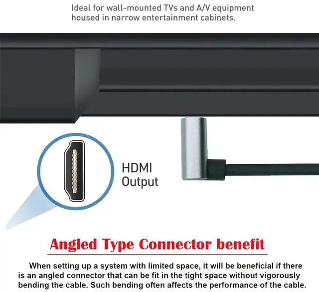 HDMI 2.1 Ultra Thin HDTV Cable 8K 4K Angled 90 Degree Hyper Super Flexible Slim Cord Type-A Male to Male for Computer HDTV