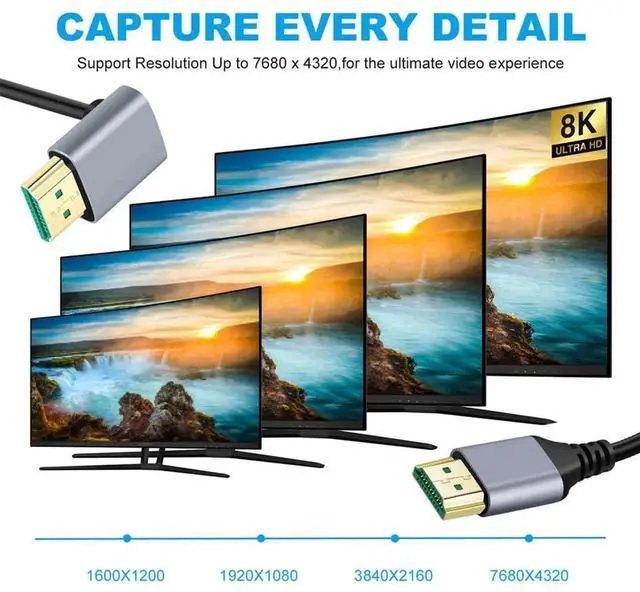 HIGH SPEED: Industry standard 48Gbs bandwidth allows for unrestricted video in 8K (UHD) 1440p (QHD) and 1080p (HD). Enjoy unparalleled video quality, crisp and accurate sound, and buffer-free ethernet connection with these HDMI cables.