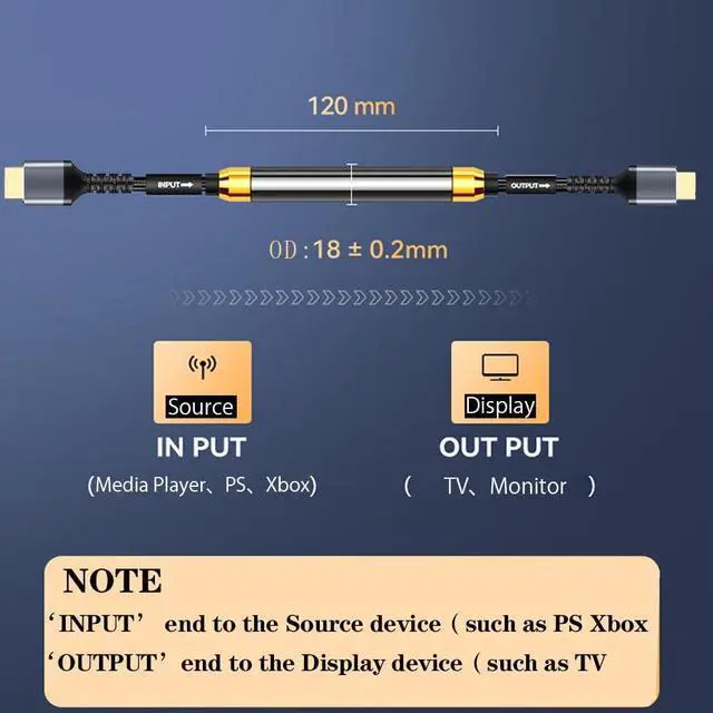 PLEASE NOTE100 Ft HDMI Cable with signal booster is Directional, Input end needs to be connected to input devices such as Blu-Ray player, PS3, PS4, Xbox One, Xbox 360, AV Receiver etc. Output end needs to be connected to display devices such as Computer, HDTV, Projector or other HDMI-compatible device Display.