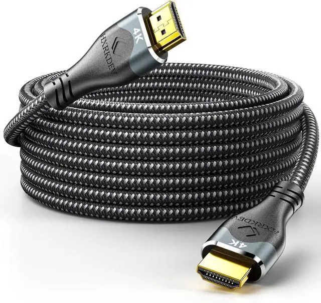 Extended Length & Premium Durability 50ft HDMI CableNeed extra reach? Our long HDMI cable comes in 50 ft HDMI cable (and other sizes) with a reinforced nylon braided jacket and anti-bending aluminum alloy casing for maximum durability. The 24K gold-plated connectors resist corrosion and ensure stable signal transmissionideal for home theaters, projectors, or gaming setups requiring HDMI cable 25+ ft.