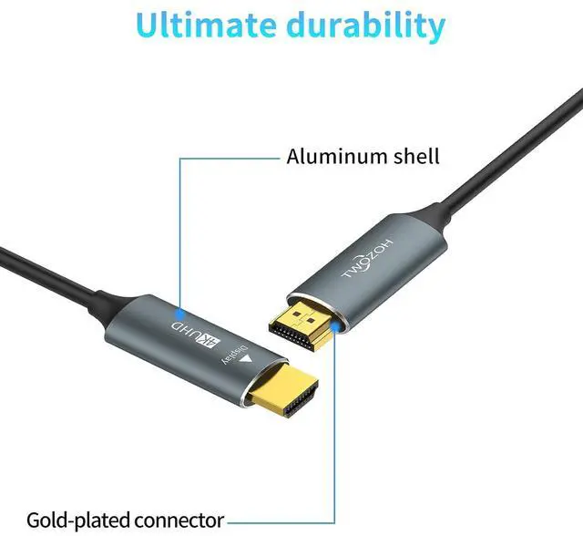 Durability & Flexible: Twozoh Fiber Optic HDMI Cable is made of high-quality glass fiber, aluminum shell, 24K Gold-plated plug for stable signal transmission and better insulation.
