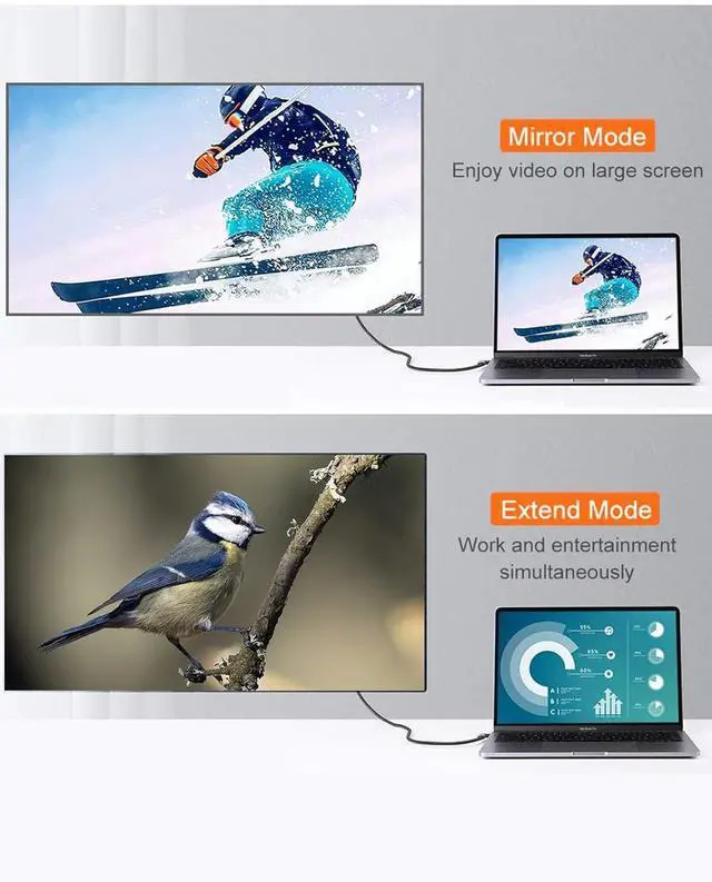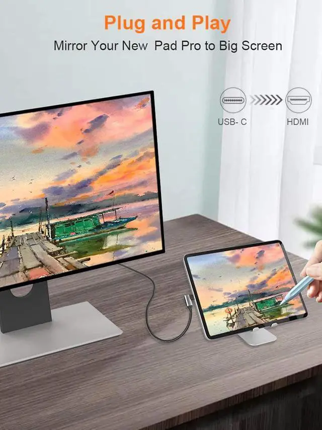 Work & Entertainment: This Aluminum HDMI cable adapter connects your USB-C cellphone/laptop/tablet to HDMI-equipped monitor/TV/projector, streaming sports events, movies, gaming, presentations and more. Perfect solution for work conference, online education, data analysis and gaming.