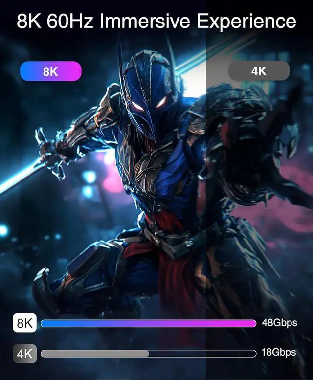 GAMING-GRADE PERFORMANCE - Enjoy crystal-clear picture on your 8K TV or display with support for 8K@60Hz, 4K@120Hz, 2K@240Hz, and HDR10+. Support higher refresh rates, perfect for PS5, Xbox Series S/One/360, Blu-ray, NVIDIA Shield. VRR, eARC, HDCP 2.3 for elite-level gaming