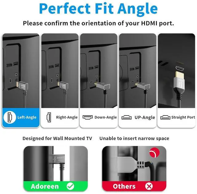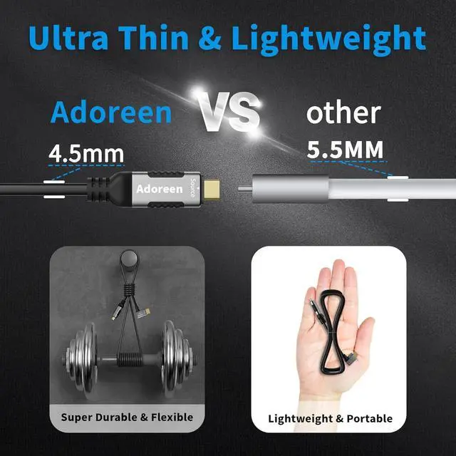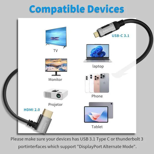 Our Advantages: Plug & play, driver-freedirectly connect USB-C devices to your TV without extra cables, eliminating WiFi instability and driver installation hassles----32AWG ultra-thin cable (OD 4.5 mm), 20% slimmer than standard converter cables, flexible and easy to store, a must-have for travel and work---- HDMI plug offers 5 angle options: straight, 180°, 90° upward, 90° downward, and 270°, perfectly adapting to monitors/TVs close to walls, solving space constraints. Reduces cable bending, designed for wall-mounted TVs and tight spaces----Sturdy one-piece design with aluminum alloy shell----Non-slip thumb groove for easy use---Includes 5 cable ties for organization to reduce clutter