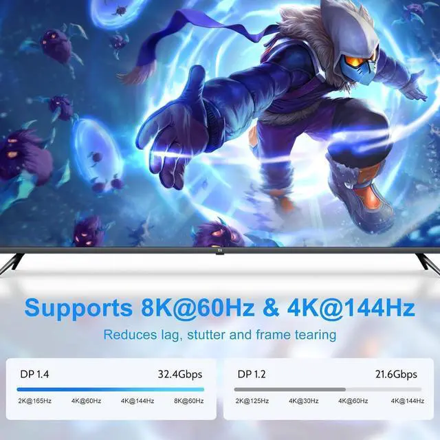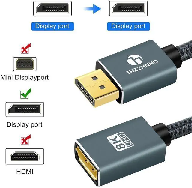 DP 1.4 Extension Cable8K DP Male to Female cable (no HDMI) supports high-resolution 8K@60Hz, 5K@60Hz, 4K@144Hz, 2K@240Hz, 1080P@240Hz And dynamic HDR and HDCP 2.2. Backward compatibility with DisplayPort 1.3 / 1.2 / 1.1, etc. Not compatible with HDMI/Mini DP)