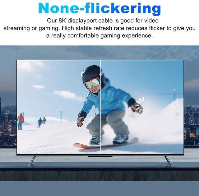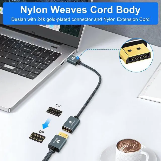 8K DisplayPort Extension CableThis DisplayPort expansion cable 1.6FT connects a compatible laptop or PC to a monitor/TV/projector equipped with a DisplayPort input. when the length of the DisplayPort cable is insufficient, giving you more freedom when wiring. It helps to increase the distance to the screen and expand the range of movement.