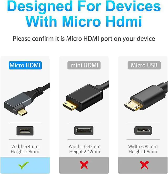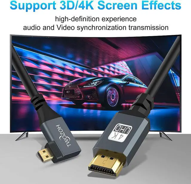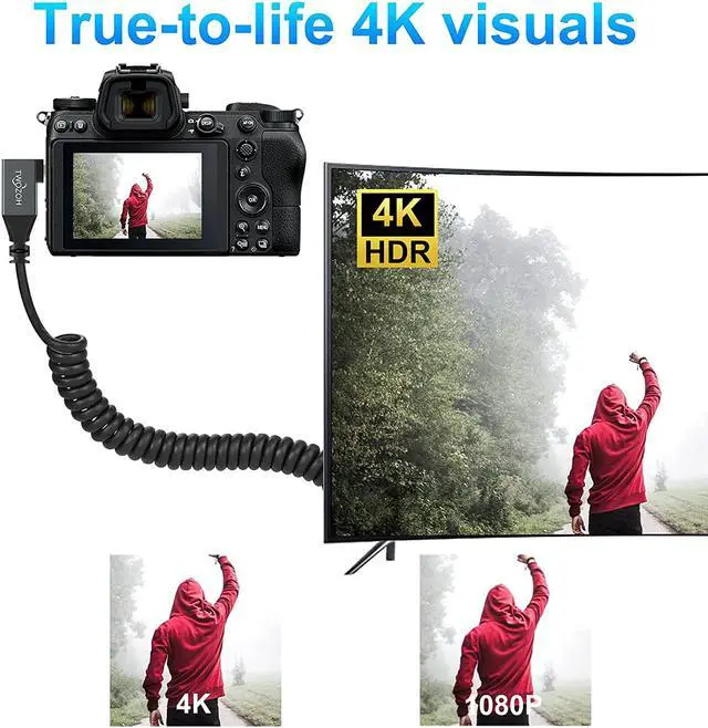 Micro HDMI CABLE -- Micro HDMI to HDMI Coiled Cable 90°degree cable connects your camera or camcorder with any TV or display that with HDMI port.