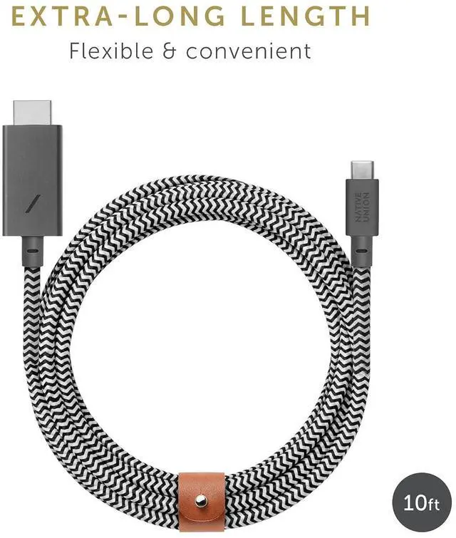 EXTRA LONG: 10ft lightning cable lets you use and connect your devices in comfort. Use the genuine leather strap to roll up and secure your cable to keep it neat and tangle-free.