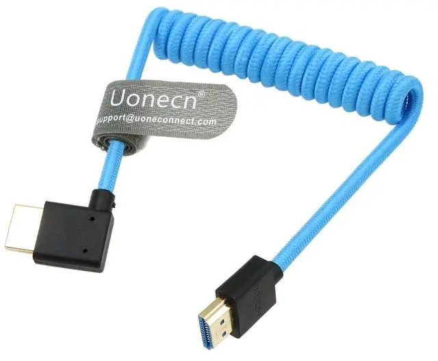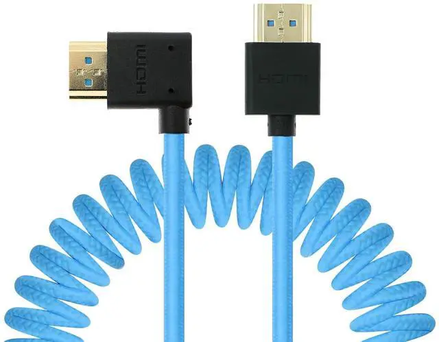 Plug B: Left Angle HDMI. This HDMI cable is a nice blue color so you can find it quickly. And it' s great for preventing theft on filming occasions.