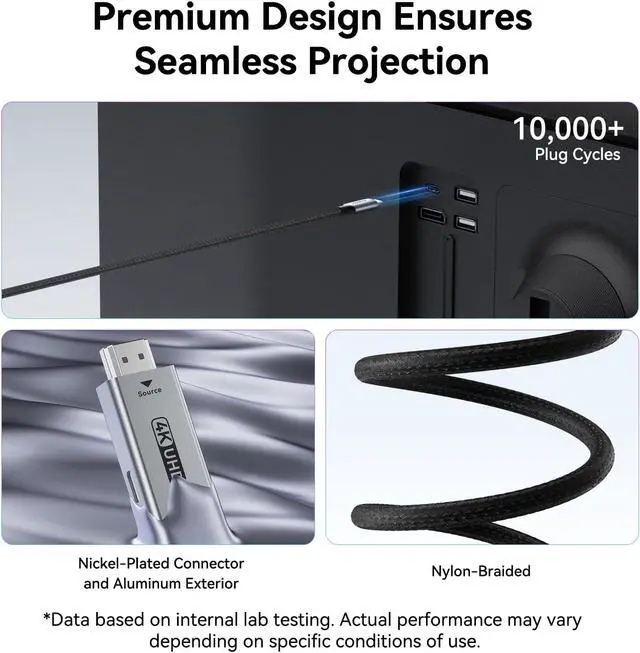 4K@60Hz Immersive VisualsThe HDMI 2.0 to USB-C (Thunderbolt 3/4/5) cable supports 4K@60Hz or 1080P@120Hz with synchronized audio/video. Enjoy 3D, HDR, HDCP 2.3 / 1.4 for movies, gaming, or presentations in mirror/extend mode.