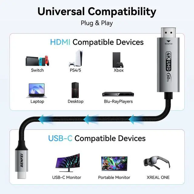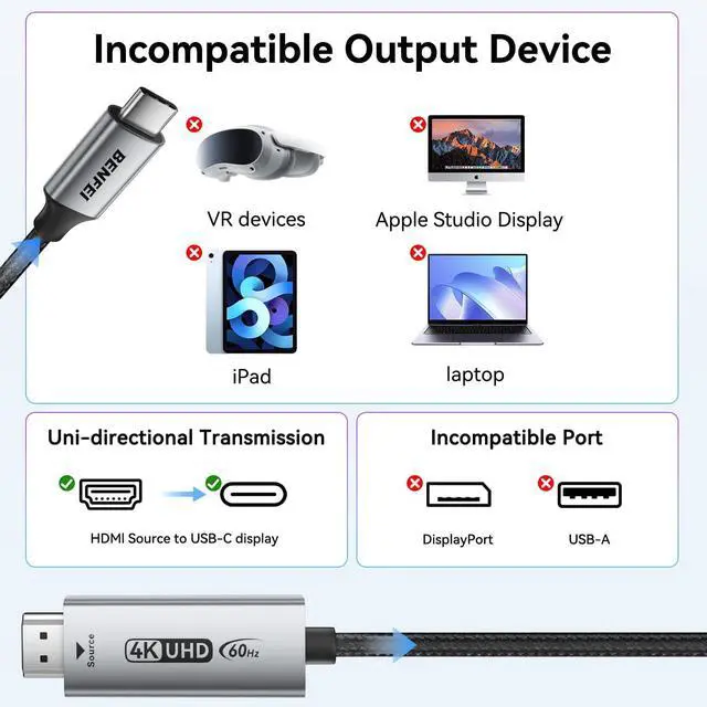 Note: Unidirectional only (HDMIUSB-C), not compatible with VR devices or USB-C laptops/phones.
