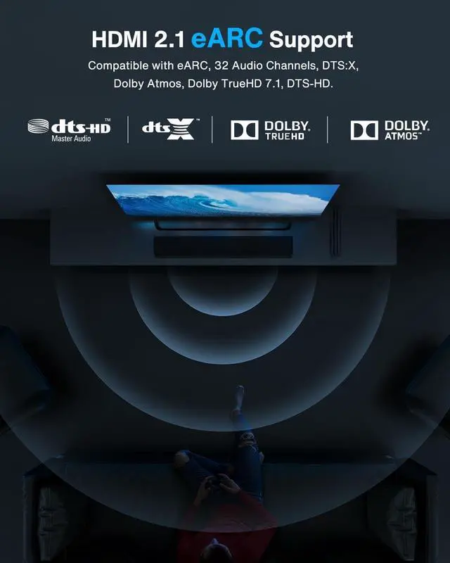 Ultra High Speed 8K HDMI 2.1 CableThis 15FT 8K 2.1 HDMI Cable supports 8K@60Hz, 4K@120Hz, 2K, 1080P. The 48Gbps bandwidth ensures smooth transmission, eliminating lag and signal loss. Advanced features like eARC and TrueHD 7.1 enhance audio sync for home theaters, while HDR and DSC provide stunning 8K high-definition visual effects. Perfect for upgrading your 8K TV, PS5, or Xbox Series. It is also backward compatible with HDMI 2.0 b/ 2.0 a/ 1.4 / 1.3 / 1.2 / 1.1