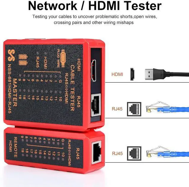 Multi-Function Tester: Quick Test HDMI Cable (HDMI 1.2V / 1.3V / 1.4V / 2.0V ) and Network Cable (RJ45)
