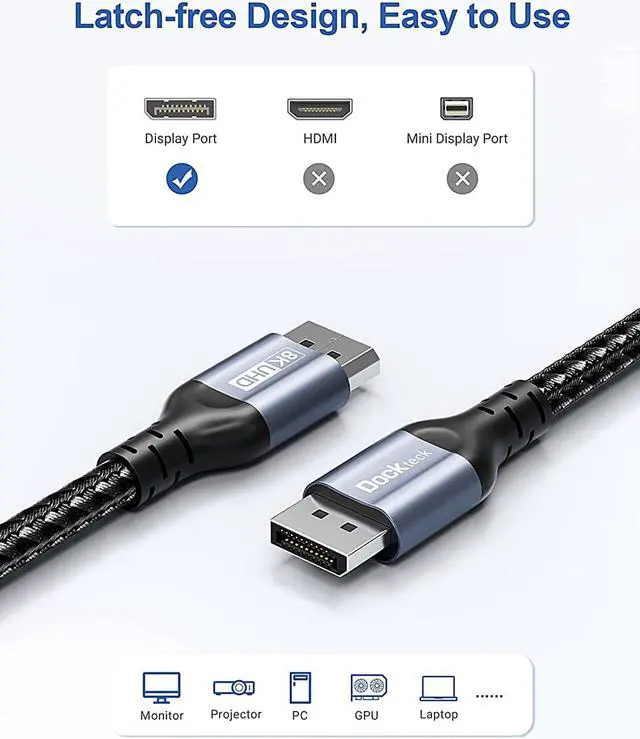 8K Ultra HD DP to DP 1.4 CableDockteck latest 8K
