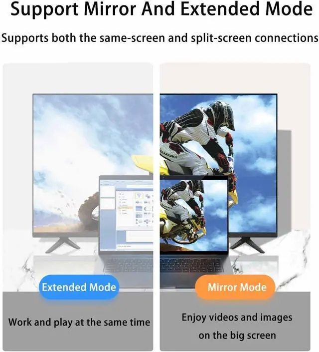 Support Mirror & Extended Mode The Cable supports Mirror Mode, which you could cast the screen and images from your computer to HDTV or Projector; Meanwhile offters Extended Mode, which you could build a multi-display environment; And also supports audio transmission with uncompressed digital 7.1, 5.1 or 2 audio channels.