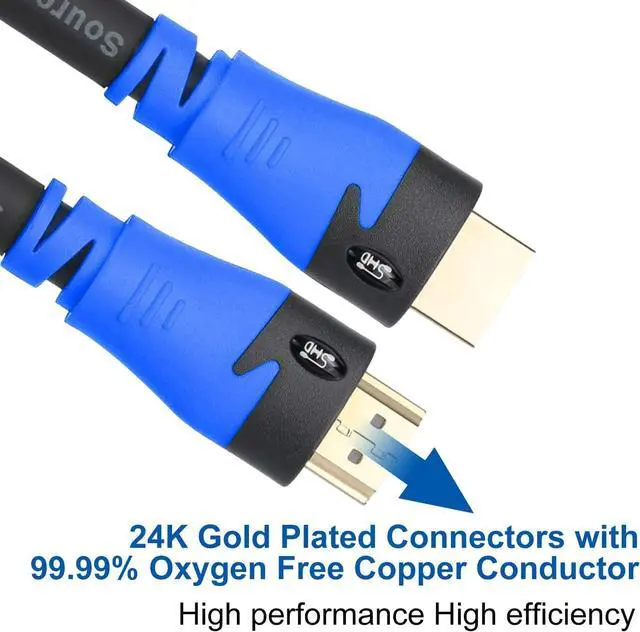 SHD High Speed HDMI Cable with Signal Booster, Black Cable Male A-Male A (Black and Blue, Double Color Injection Molding Head Type)