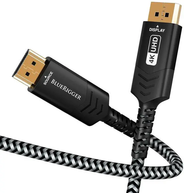 SUPERIOR BUILD: BlueRigger HDMI source to displayport monitor cable is constructed with an aluminum alloy shell and multi-layer shielding to ensure optimal signal transmission and minimize EMI/RFI interference. The 24K gold plated connectors and cotton braid increase corrosion resistance and durability