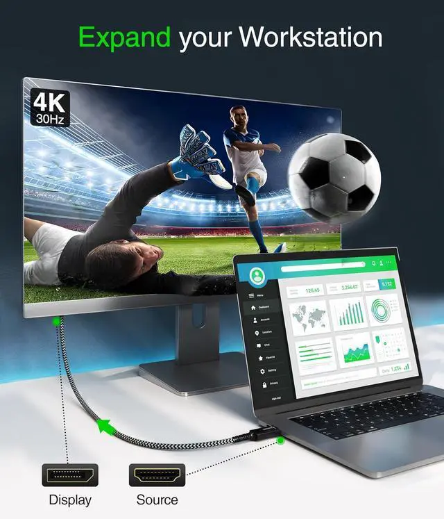 Note: This is a unidirectional cord and DOES NOT support DisplayPort to HDMI transmission