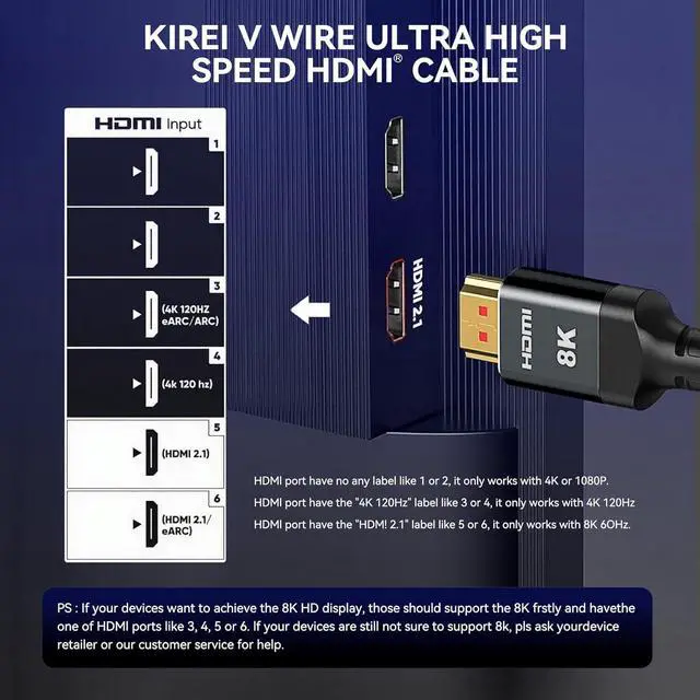 Cable 48Gbps: Ultra-high-speed cable supports 8K@60Hz, 4K@120Hz/144Hz, and 1080P@240Hz. Backward compatible with HDMI 2.0 / 1.4
