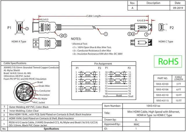 COMPATIBILITY AND MULTI_PURPOSE UTILITY: One end of the cable has a Type C Mini HDMI male plug, while the other end uses a standard HDMI male plug, delivering the full HDMI specifications you' re seeking, along with support for high speed Ethernet. HDMI cables can be used with any device with HDMI such as HDT