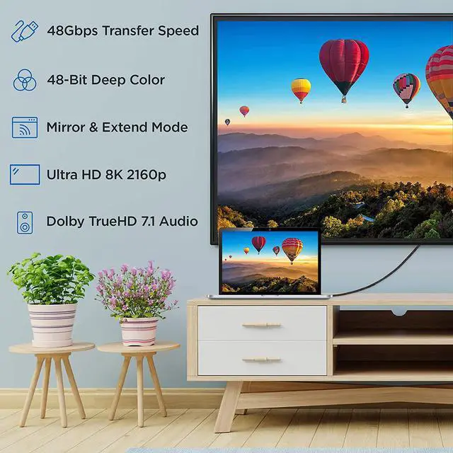 Ritz Gear 8K HDMI 2.1 Cable is compatible with your HD streaming devices or other HDMI-enabled devices. Support Mirror and Extended Mode for you work, study, and entertainment provide the best visual enjoyment.