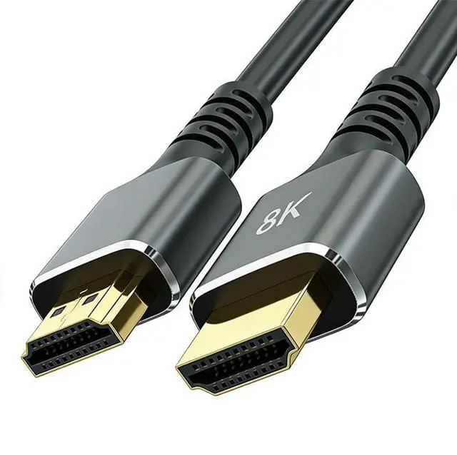 SOEWIOU HDMI 2.1 cable supports 8K@60Hz, 4K@120Hz/240Hz high-definition transmission with eARC, HDR and VRR. Space gray appearance, gold-plated connector, multi-layer shielding and durable braided design ensure stable signal. 1-meter length ideal for connecting TV, monitor, projector, PC and game console.