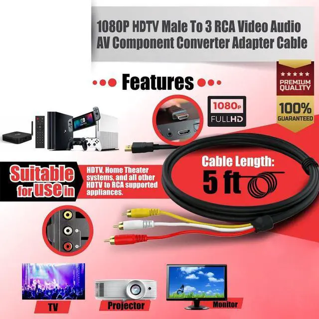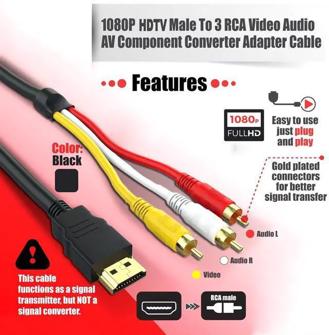 This cable is a passive adapterit does NOT convert digital HDMI signals to analog RCA. It only works when your source device already has built-in HDMI to AV conversion capabilities. Compatible devices include: