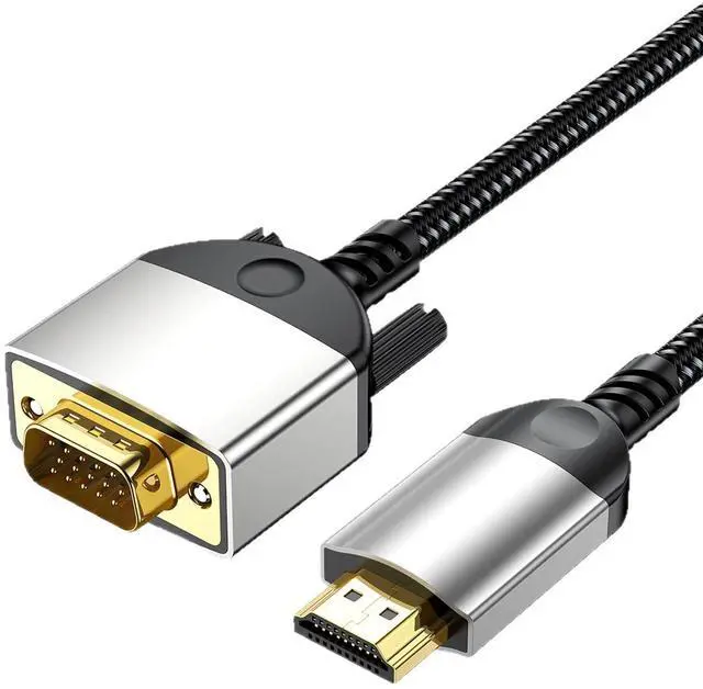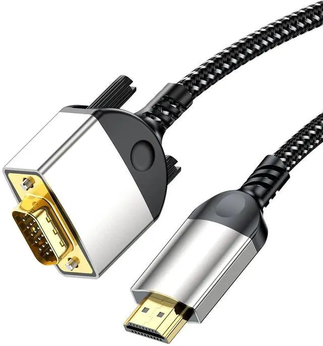 Connect your HDMI devices to VGA displays with this HDMI to VGA Cable. Featuring 1080P Full HD support, premium aluminum alloy connectors, and a durable braided cable, this high-quality adapter delivers crisp, clear video from laptops, PCs, and set-top boxes to VGA monitors, projectors, and displaysperfect for presentations, home theater, and office setups.