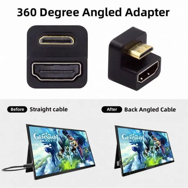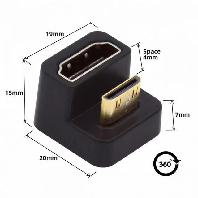 • 360 Degree Up Opposite U Shape Back Angled Mini HDMI 1.4 Male to HDMI Female Extension Adapter Converter